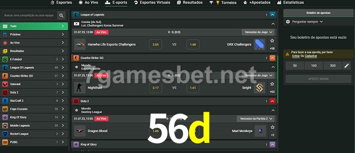 A aposta 56d oferece aos jogadores a experiência mais conveniente de apostas em eSports!